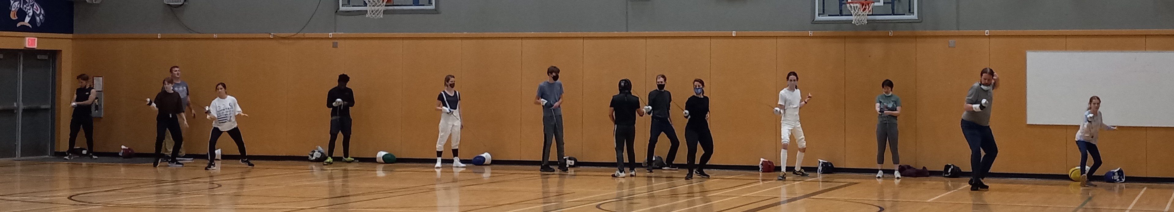 We fence Mondays from 8 – 10 pm and Wednesdays from 7:30 – 10 pm at Royal Oak Middle School Gym (our usual spot). You will use the same equipment that has been assigned to you during the class.